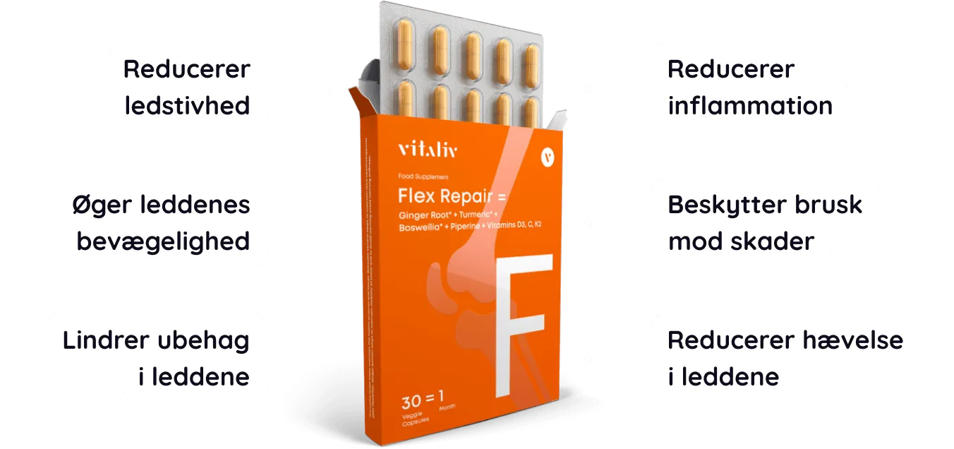 Flex Repair forbedrer dine led og øger din bevægelighed ved at reducere inflammation – den egentlige årsag til ledsmerter.