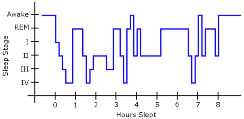 Tag et kig på diagrammet kaldet "hypnogram" nedenfor for at se, hvordan en nat med sund søvn skal se ud...