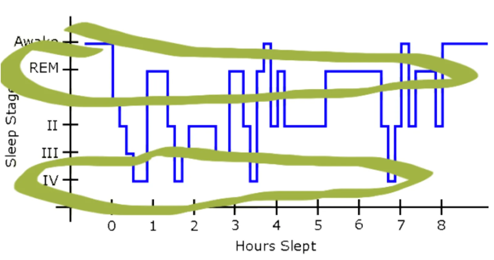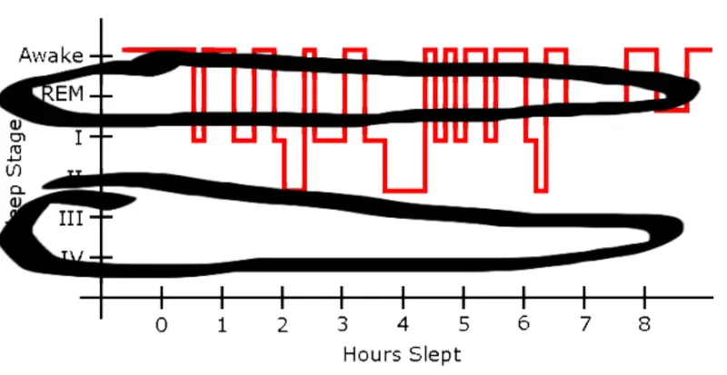 Som du nu har erfaret, er det i de sidste stadier III og IV og REM, at din krop heler sig selv, og som du kan se på grafen, berøver alkohol og sovepiller dig for både III og IV.